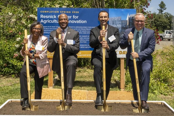 Construction officially began on the Lynda and Stewart Resnick Center for Agricultural Innovation Wednesday with a groundbreaking event celebrating the future $64.4 million facility at the University of California, Davis.