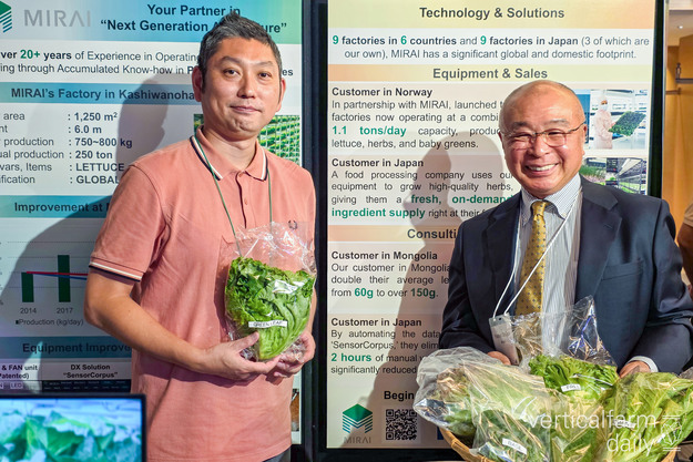 Nagateru Ozawa and Yoshio Shiina with MIRAI showcasing their produce. View the Photo report: 2nd JPFA Symposium, Chiba here.