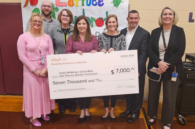 As part of their national recognition, Thornton's Ferry Elementary School received a $7,000 award from Voya, making it the first school in New England to place in the top three of this competition.