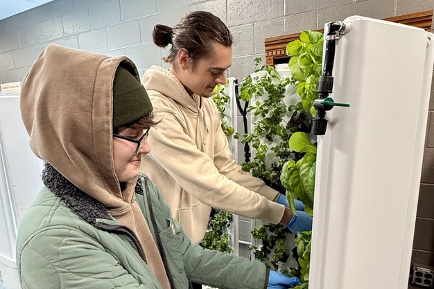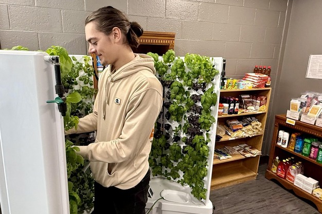 "It's really awesome to know that we're doing a positive thing by providing fresh and healthy options for those facing food insecurity," said student Raymond Greimel of Petoskey, who works alongside Lilly Brooks of Monroe on the directed study project. "Food pantries mainly have non-perishable items, so it's great that we're able to grow greens and herbs that are not shipped from who knows where and make them easily accessible. It's also cheaper and more sustainable to grow produce on campus."