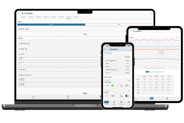 Current control decisions are governed by crop-specific setpoints and rule-based logic processed at the edge. "We already move beyond single-parameter control," Sinha says. "For example, we use VPD rather than humidity alone, and nutrient uptake trends rather than static EC values."