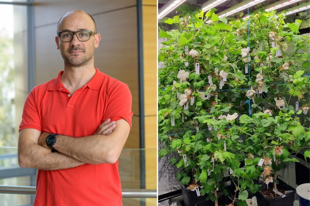 Filipe Natalio and a fully indoor, hydroponic cotton plant
