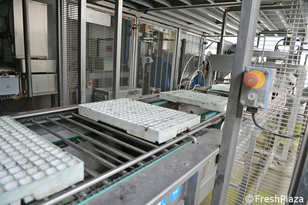 "The sown and automatically stacked containers begin their growth process in the nine germination rooms, where the temperature, light, and humidity levels are constantly monitored and adjusted," Gabriele continues. After leaving the germination rooms, the sprouted containers undergo rigorous checks before being sent to the repacking and mechanical transplanting lines. These lines prepare the containers for their next transfer to the greenhouse."