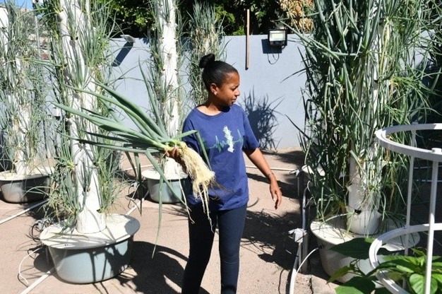 After harvesting the peppers, the team transitioned to planting leafy greens and scallions in the available spaces. She emphasises that, unlike traditional farming – where downtime is required for soil to rejuvenate between cycles – this soilless system enables continuous, back-to-back planting.